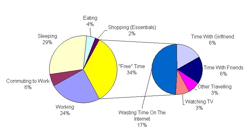Here I am of course referring to exclusive activities. A lot of my time spent wasting time on the internet is also spent at work, and I'm not including things like "listening to music" since it's very rare that that is all I am doing (so I might be listening to music while commuting or something like that).